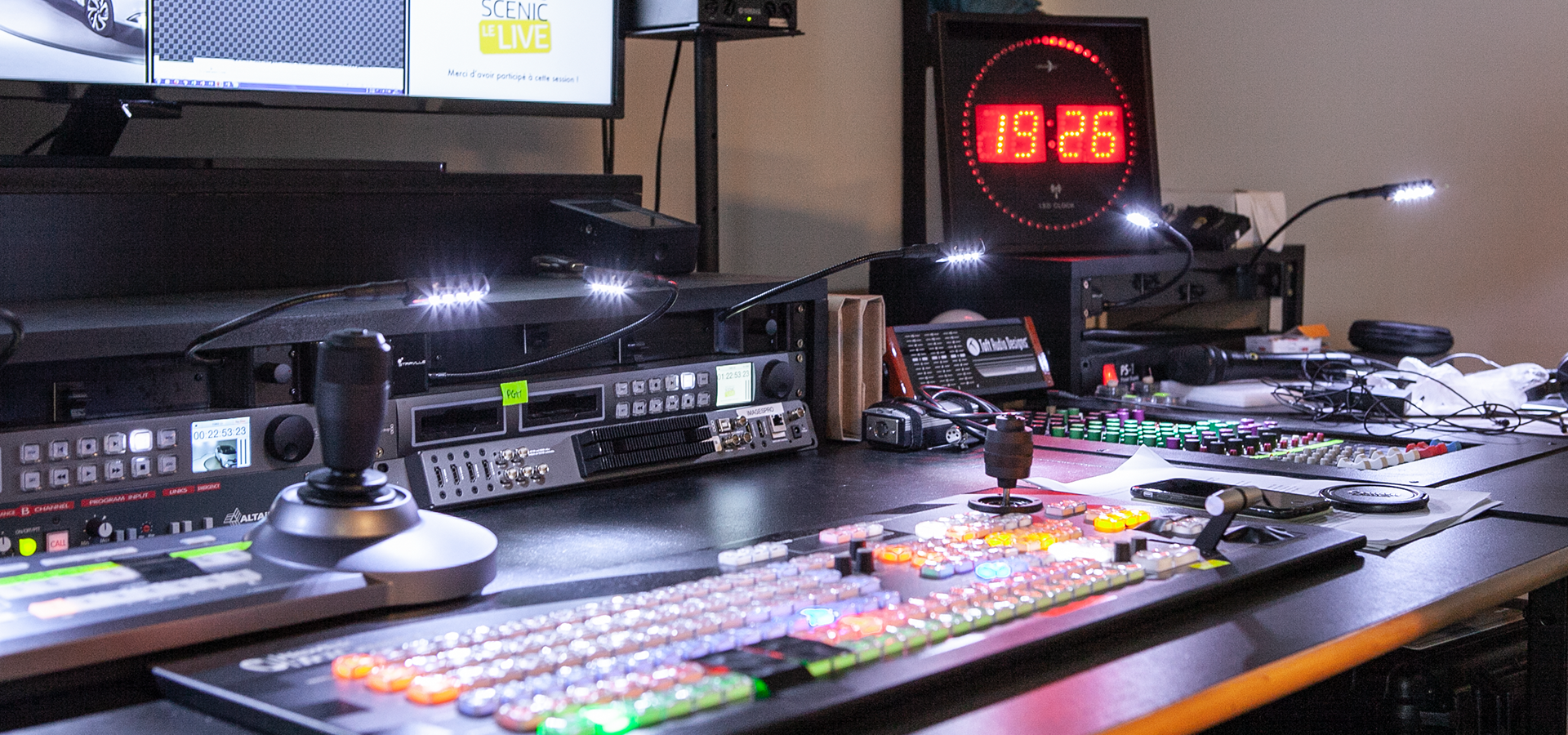 En conclusion, on peut dire que la réalisation en direct en régie flight-case est la solution la plus utilisée. De plus, elle permet une mise en place rapide et bénéficie d’un encombrement réduit.